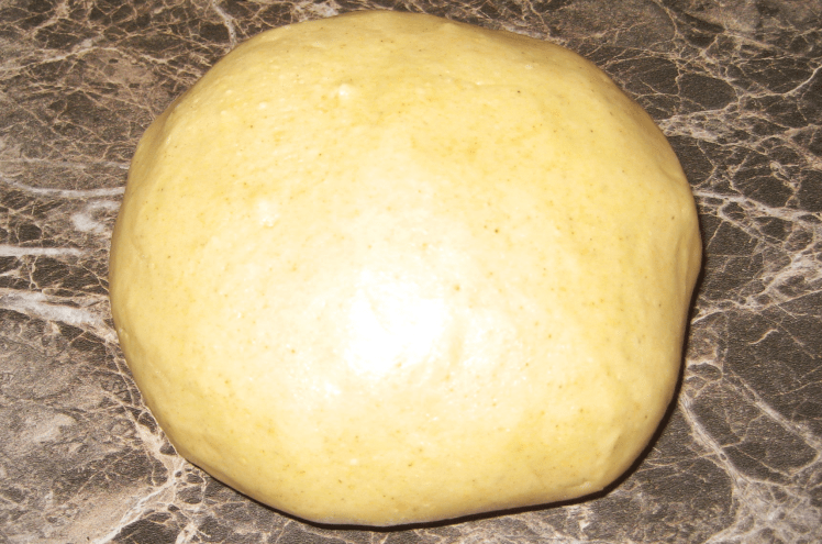 Una vez tenemos todos los ingredientes preparados, se trata de mezclar. Pondremos el azúcar, la harina, la canela, las almendras y la manteca en un bol y nos remangaremos bien. Hay que ensuciarse las manos y amasar, porque es la única manera de conseguir una masa uniforme. El resultado debe ser una bola grande que no se nos desmigue ni se quede pegada a las manos.