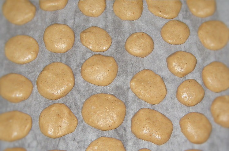 Encendemos el horno para que vaya calentando a 200 ºC (calor arriba y abajo) y nos disponemos a dar forma a los polvorones. Aquí cada uno que elija el grosor y tamaño de los mismos. A nosotros nos gustan pequeños y redonditos. Para ello, vamos cogiendo pequeñas bolas y las vamos distribuyendo por la bandeja del horno. Luego las presionaremos un poco para que pierdan la forma de esfera y cojan la figura que todos tenemos en la cabeza para el polvorón.