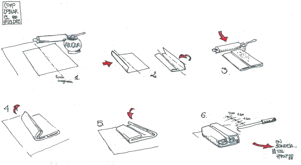 Paso 2: Aquí tenemos que imaginar que hay un línea que divide la plancha en dos por el centro. El objetivo es doblar la plancha desde los laterales hacia ese centro. Cada lateral nos lo llevamos hacia la mitad y se nos queda la plancha en la mitad de tamaño de ancho.