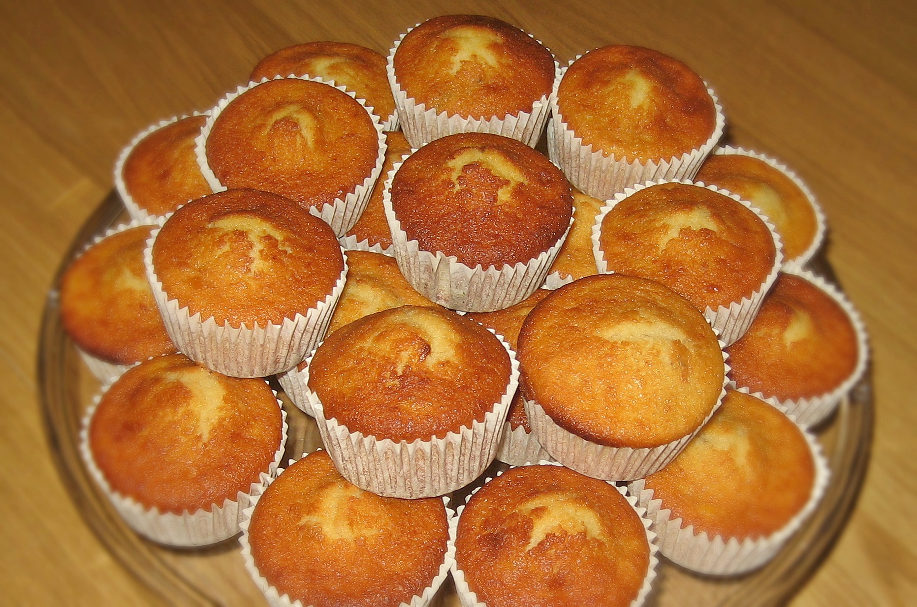 Rellenamos los moldes de magdalenas hasta las dos terceras partes y al horno. A los 20 minutos aproximadamente estarán hechas.