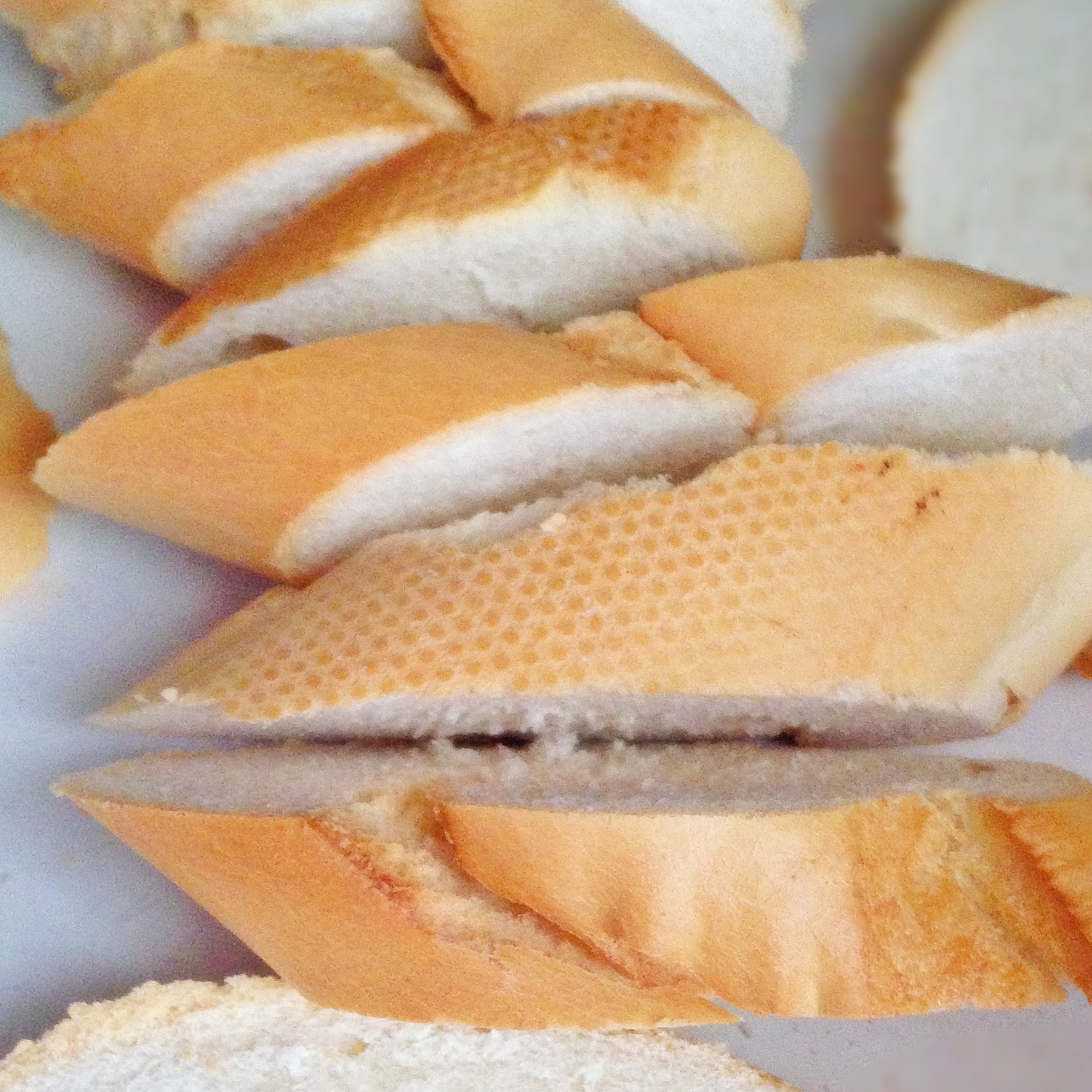 Coge la barra de pan duro y pártela en rebanadas de unos 2 cm. Vamos, del grosor que suelen tener las torrijas.