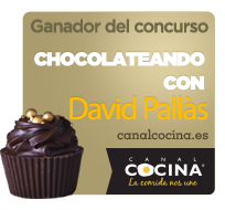 ¡Ah! ¿Qué no te lo había dicho? Pues sí, mi receta de «Galletas Crinkles de chocolate y avellanas« me sirvió para ganar, gracias a la generosidad de Canal Cocina, una Master Class con el maestro chocolatero David Pallàs y una copia firmada de su libro.