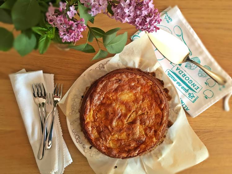 Reparte la masa por el molde y mételo al horno. Entre 50 minutos y 1 hora deberían bastar para que cuaje pero ya sabes que cada horno funciona diferente y tendrás que ir mirándolo cada rato. Piensa que la cantidad de líquido es grande y es probable que te cueste que cuaje por la parte central.